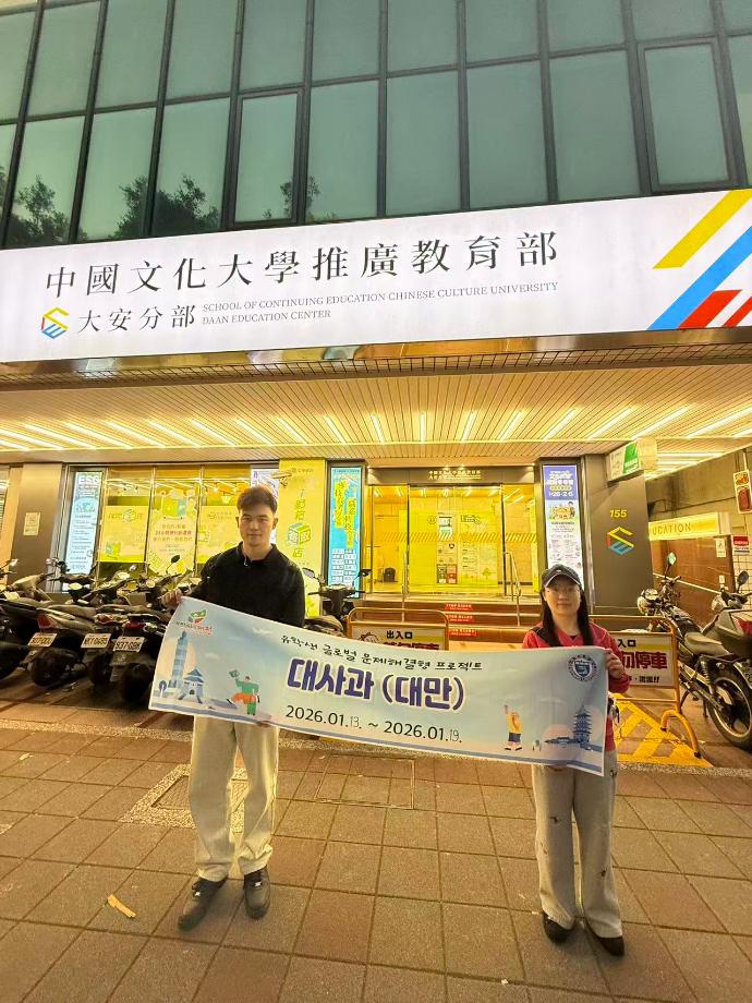 본문 시작 홈으로 커뮤니티 학과안내 교수소개 학과과정 커뮤니티 홈페이지가이드 학과사진첩 공지사항 취업정보 학과사진첩 학과행사 동아리 학생회 교우소식 학과사진첩 페이스북 트위터 프린트 겨울방학 해외 배낭여행-대만 법학과 45 2026-01-21 세 팀. 베트남의 푸꾸옥, 다낭, 그리고 대만. 법학과 4명이 신청해서 여러 곡절 끝에 2명으로 전락했지만 가까스로 출발했고 그래도 일정을 소화하고 잘 마무리함. 목록 이전2025학년도 제3회 법학과 모의재판 경연대회 다음 겨울방학 해외 배낭여행-다낭 담당부서 : 법학과 담당자 : - 연락처 : 043-649-1764 최종수정일 : 2024-10-26 만족도조사 만족도 조사 이 페이지에서 제공하는 정보에 대하여 만족하시나요? 매우만족 만족 보통 불만족 매우불만족