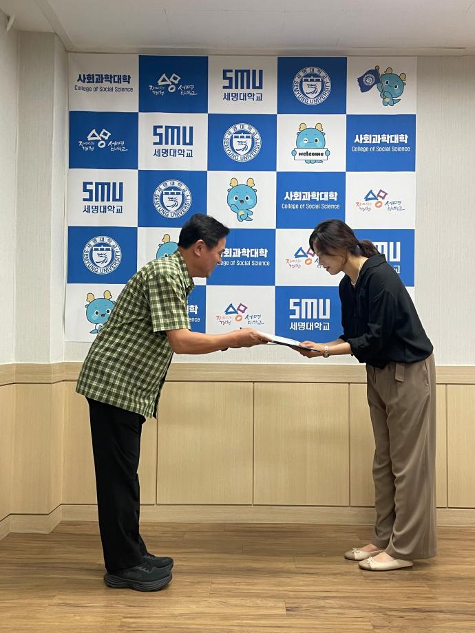 본문 시작 홈으로 커뮤니티 대학소개 학과소개 입학안내 커뮤니티 홈페이지가이드 포토갤러리 대학소식 자료실 포토갤러리 포토갤러리 페이스북 트위터 프린트 2025학년도 1학기 수업평가 우수강사 상장 수여식 사회과학대학 477 2025-09-02 법학과 이율경 강사님 목록 이전사회과학대학 2024학년도 후기 학위수여식 다음 2025 제2회 사회과학대학 발전포럼 성료 (1/2) 담당부서 : 사회과학대학 담당자 : - 연락처 : 043-649-7412 최종수정일 : 2024-10-26 만족도조사 만족도 조사 이 페이지에서 제공하는 정보에 대하여 만족하시나요? 매우만족 만족 보통 불만족 매우불만족