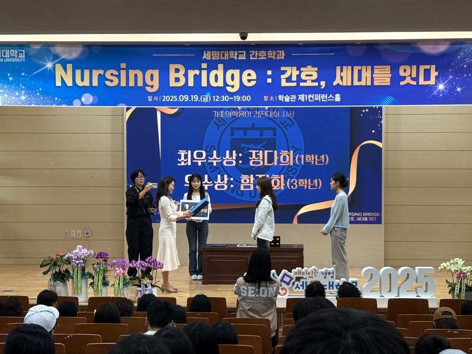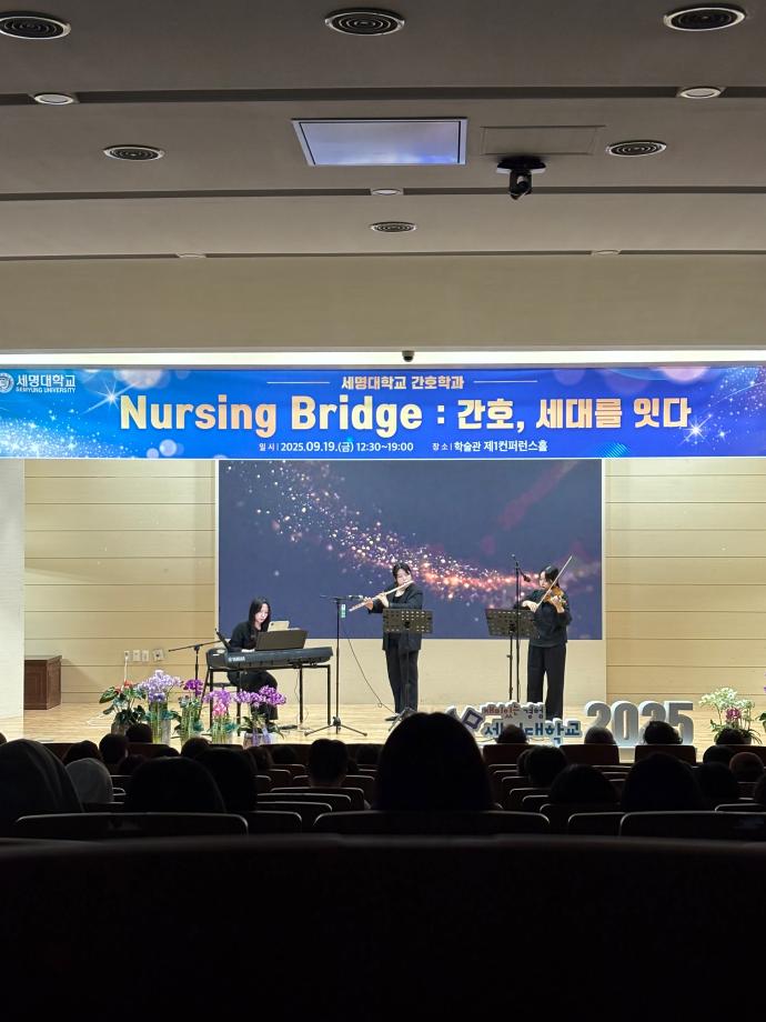 본문 시작 홈으로 커뮤니티 학과소개 교수소개 교육과정 학과소식 학과특성화 사업 커뮤니티 홈페이지가이드 포토갤러리 학사일정 포토갤러리 학생회 학과동아리 학과 취업정보 동창회 학과운영개선의견 발전기금 포토갤러리 페이스북 트위터 프린트 🎉 세명대학교 간호학과 30주년 기념행사 🎉 Nursing Bridge: 간호, 세대를 잇다 간호학과 864 2025-09-24 이번 행사에는 신경림 대한간호협회장님의 기조강연과 정승교 명예교수님의 특별강연이 있었습니다. 권동현 총장님을 비롯한 각 부처 처장님, 명지병원 병원장님, 간호부장님 등 여러 기관에서도 직접 참여해주시고, 축하영상 및 화환을 보내주시어 자리가 더욱 빛났습니다. 1기 졸업생부터 현 재학생까지 500여명이 한뜻으로 모여 뜻깊은 시간을 보냈습니다. 과거와 현재, 그리고 미래의 간호를 잇는 ‘Nursing Bridge’ 그 감동의 순간들입니다. 목록 이전🎓 [2025학년도 핵심간호술 졸업인증제 – 선배님들의 모교 방문] 다음 2025년 2학기 간호학과 교학간담회 담당부서 : 간호학과 담당자 : - 연락처 : 043-649-1357 최종수정일 : 2024-10-26 만족도조사 만족도 조사 이 페이지에서 제공하는 정보에 대하여 만족하시나요? 매우만족 만족 보통 불만족 매우불만족