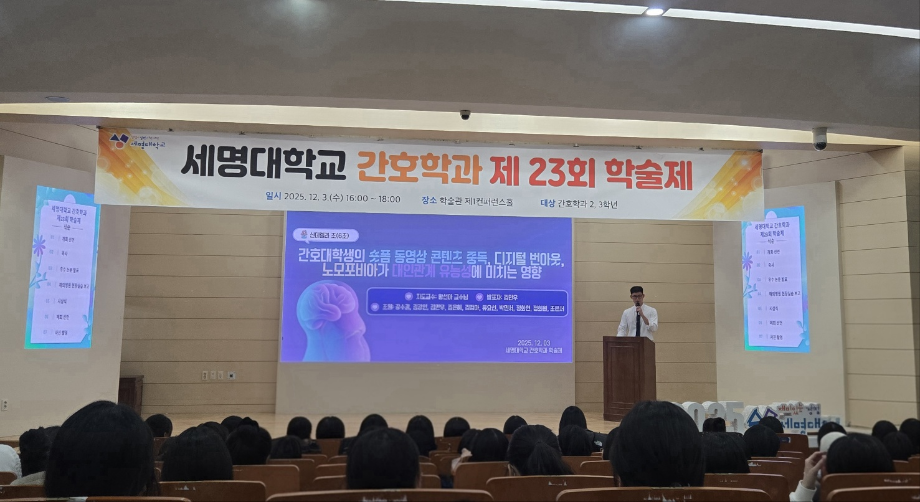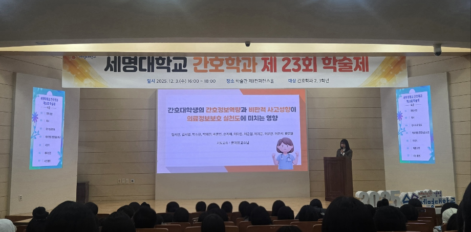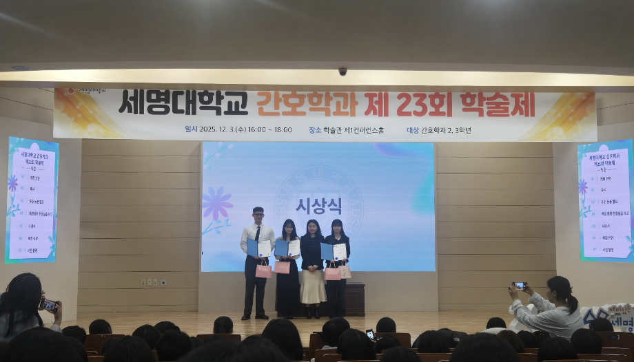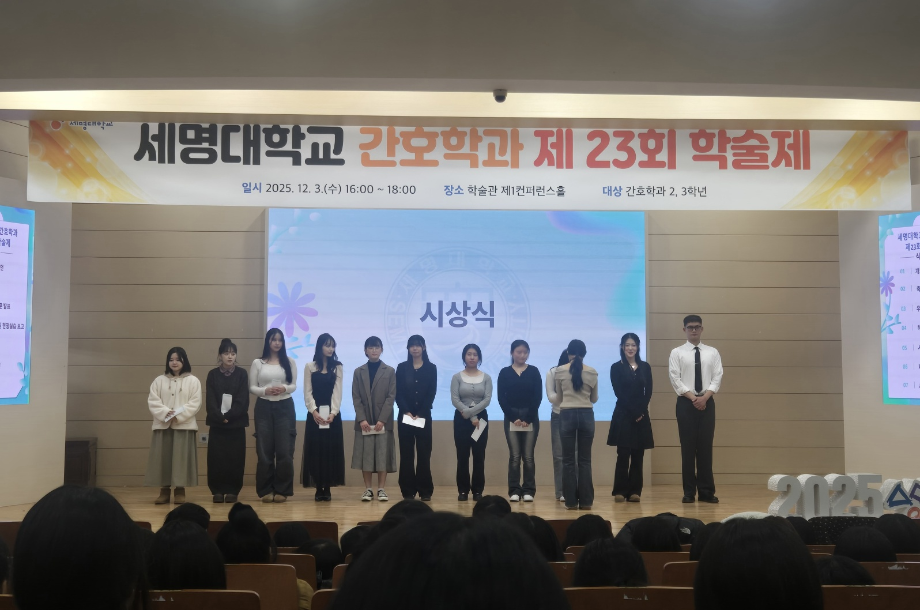 본문 시작 홈으로 커뮤니티 학과소개 교수소개 교육과정 학과소식 학과특성화 사업 커뮤니티 홈페이지가이드 포토갤러리 학사일정 포토갤러리 학생회 학과동아리 학과 취업정보 동창회 학과운영개선의견 발전기금 포토갤러리 페이스북 트위터 프린트 제 23회 간호학과 학술제 간호학과 443 2025-12-08 12/3 진행된 📝 2024 학술제 발표와 ✈ 해외 인턴십 경험 공유 후기가 학과 블로그에 업로드되었습니다. 발표 현장과 생생한 경험담이 궁금하다면 아래 링크를 확인해주세요 👇 🔗 링크 https://blog.naver.com/nursing_smu_official/224099825798 목록 이전📍 ‘임상실습 안전사고 ZERO를 위하여’ 특강 담당부서 : 간호학과 담당자 : - 연락처 : 043-649-1357 최종수정일 : 2024-10-26 만족도조사 만족도 조사 이 페이지에서 제공하는 정보에 대하여 만족하시나요? 매우만족 만족 보통 불만족 매우불만족