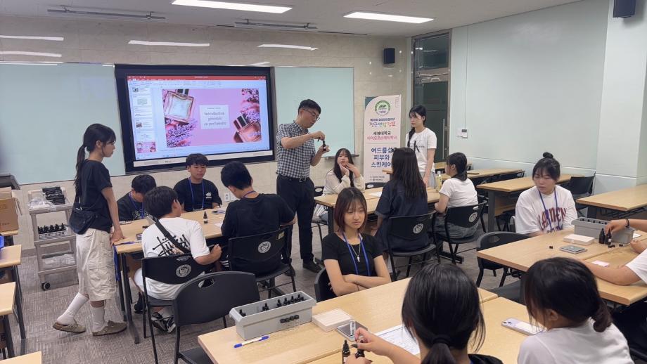 본문 시작 홈으로 커뮤니티 학과소개 학과과정 대학원 커뮤니티 연구동아리 홈페이지가이드 포토갤러리 학과공지 채용정보 학과일정 포토갤러리 유튜브 인스타그램 취업현황 학생회 조직도 졸업생 숏터뷰 포토갤러리 페이스북 트위터 프린트 2025학년도 파라미타 청소년 전국 연합캠프 학과체험 바이오코스메틱학과 741 2025-08-01 안녕하세요 바이오코스메틱학과입니다. 2025년 7월 23일 파라미타 청소년 전국연합캠프 학과체험을 진행하였습니다. 이날 바이오코스메틱학과에서는 피부측정 및 향수제조체험을 김용민교수님께서 지도하여 주셨습니다. 목록 이전대학 연계전공 입시박람회 다음 2025 자기설계 해외 배낭연수 바이오코스메틱학과 담당부서 : 바이오코스메틱학과 담당자 : - 연락처 : 043-649-1638 최종수정일 : 2024-10-26 만족도조사 만족도 조사 이 페이지에서 제공하는 정보에 대하여 만족하시나요? 매우만족 만족 보통 불만족 매우불만족