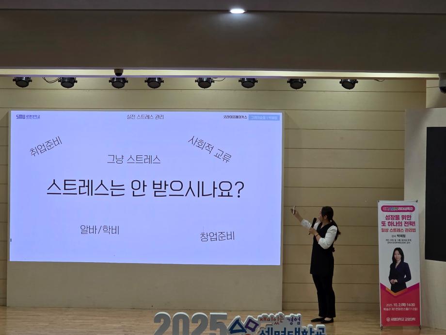 본문 시작 홈으로 커뮤니티 게시판 대학소개 교수소개 교양교육과정 교양교육 프로그램 커뮤니티 게시판 입학안내 홈페이지가이드 자료실 공지사항 자료실 학생 커뮤니티 취업정보 CHARM리더십특강 CHARM리더십특강 CHARM커뮤니케이션 제천문화탐방과 스토리텔링 CHARM인문학콘서트~2018 향토문화탐방~2018 특강 및 기타 행사 포토 갤러리 CHARM리더십특강 페이스북 트위터 프린트 2025-2학기 CHARM리더십특강 5주차 강의 교양대학 223 2025-10-02 2025-2학기 CHARM리더십특강 5주차 강의 성장을 위한 또 하나의 전략! 일상 스트레스 관리법_박혜림강사님 목록 이전2025-2학기 CHARM리더십특강 3주차 강의 다음 2025-2학기 CHARM리더십특강 9주차 강의 담당부서 : 교양대학 담당자 : - 연락처 : 043-649-7065 최종수정일 : 2024-10-26 만족도조사 만족도 조사 이 페이지에서 제공하는 정보에 대하여 만족하시나요? 매우만족 만족 보통 불만족 매우불만족