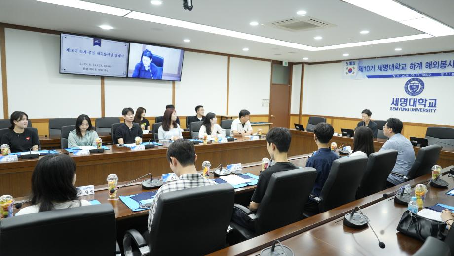 본문 시작 Photo SMU 세명소개 입학/취업 대학/대학원 학사지원 대학생활 연구/산학 기관/시설 SMU Story 소통·공감 학교기업 홈페이지가이드 학생활동 News@SMU 공지사항 보도자료 Photo SMU Media SMU 민송백일장 해카톤 경진대회 학생활동 페이스북 트위터 프린트 2025 제10기 세명대학교 하계 해외봉사단 발대식 홍보센터 990 2025-08-15 2025 제10기 세명대학교 하계 해외봉사단 발대식 목록 이전밀어주는 위원회 제4회 무소출정식 이전2024 후기 학부 및 대학원 학위수여식 담당부서 : 홍보센터 담당자 : 홍보센터 연락처 : 043-649-1175 최종수정일 : 2024-10-26 만족도조사 만족도 조사 이 페이지에서 제공하는 정보에 대하여 만족하시나요? 매우만족 만족 보통 불만족 매우불만족