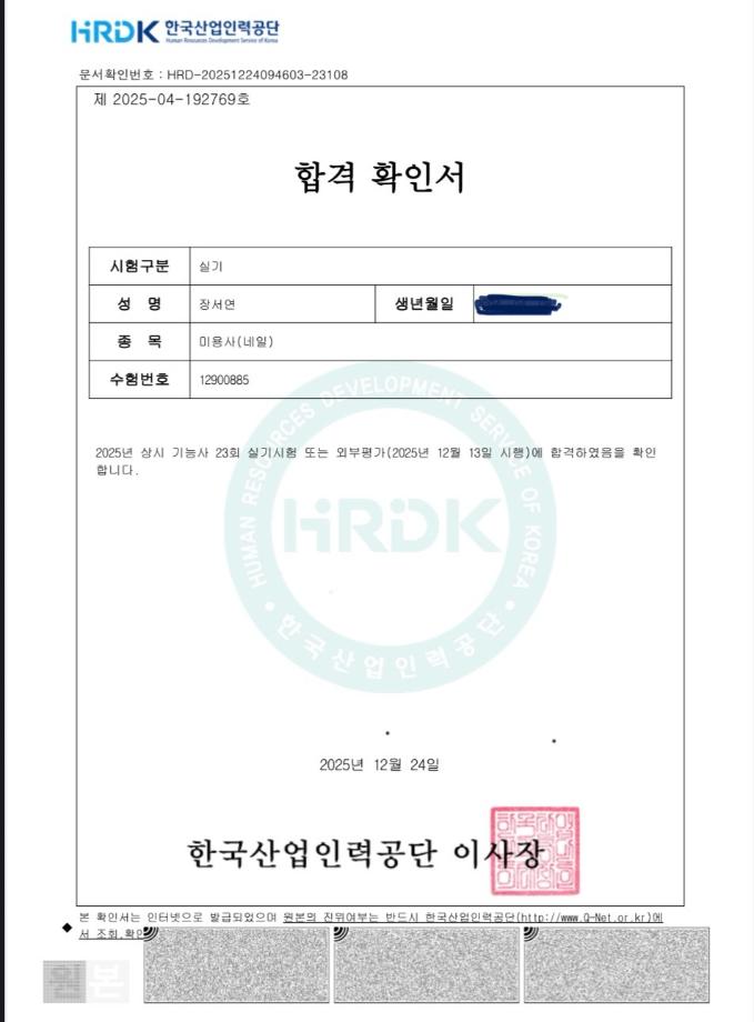 본문 시작 홈으로 커뮤니티 학과소개 교수소개 학과과정 커뮤니티 대학원 홈페이지가이드 포토갤러리 공지사항 채용정보 포토갤러리 Youtube 바로가기 Instargram 바로가기 Blog 바로가기 Facebook 바로가기 포토갤러리 페이스북 트위터 프린트 '장서연' 미용사내일 국가자격 합격! 뷰티케어학과 11 2025-12-26 '장서연' 미용사내일 국가자격 합격! 목록 이전세명대학교 2026학년도 수시모집 최초합격자 등록 안내 다음 기초헤어커트 기말시험