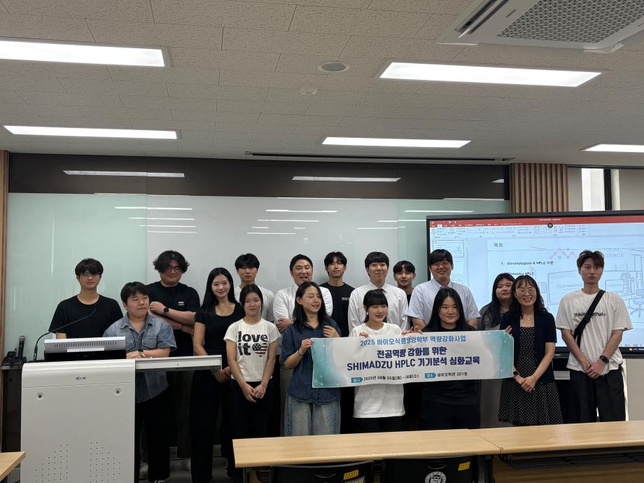 본문 시작 홈으로 커뮤니티 학부소개 진로·취업 교육과정 커뮤니티 대학원 입학상담 홈페이지가이드 갤러리 공지사항 갤러리 학생회 동문회 전공자료실 전공동아리 Youtube Instagram 갤러리 페이스북 트위터 프린트 학부역량강화사업 : HPLC 기기분석 심화교육(8/5-8/27) 바이오식품영양학부 597 2025-09-06 학부역량강화사업 : HPLC 기기분석 심화교육 1) 일 시 : 2025. 08. 5(화) ~ 27(수), 주 2일 (총 8일간) 2) 대 상 : 바이오식품영양학부 재학생 11명 3) 강 사 : ㈜시마즈 선임연구원 및 바이오제약학부 교수님 등 목록 이전2025년도 중등 1급 정교사(영양교사) 자격연수 특강(박수진교수) 이전2025 자기설계 해외배낭연수(7/8~7/15, 호주) 담당부서 : 바이오식품영양학부 담당자 : - 연락처 : 043-649-1578 최종수정일 : 2024-10-26 만족도조사 만족도 조사 이 페이지에서 제공하는 정보에 대하여 만족하시나요? 매우만족 만족 보통 불만족 매우불만족
