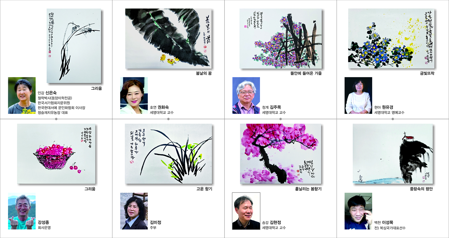 본문 시작 홈으로 MCC News 학과소개 교수소개 학과과정 MCC News MCC SNS 홈페이지가이드 교수 및 졸업생 학과 및 재학생 교수 및 졸업생 미디어 정보통 교수 및 졸업생 페이스북 트위터 프린트 권화숙 교수님 향기로운 삶, 문인화 전시회 안내 미디어콘텐츠창작학과 169 2025-12-04 향기로운 삶,문인화' 강좌 수강생들의 그동안의 배움과 성과를 공유하는 2025년 제5회 문인화전 – 「여백의 시간을 거닐다 II」 전시회를 개최합니다. 📍 전시 안내 [일시] 개막식: 2025년 12월 4일(목) 16:00 전시기간: 2025년 12월 4일(목) 16:00–18:00 2025년 12월 5일(금)–12월 8일(월) 10:00–17:00 [장소] 제천시민회관 2층 전시실(충북 제천시 의림대로 125) 목록 이전권화숙 교수님, 공연 「허재비고블린의 꿈」 출연 담당부서 : 미디어콘텐츠창작학과 담당자 : - 연락처 : 043-649-1741 최종수정일 : 2024-10-26 만족도조사 만족도 조사 이 페이지에서 제공하는 정보에 대하여 만족하시나요? 매우만족 만족 보통 불만족 매우불만족