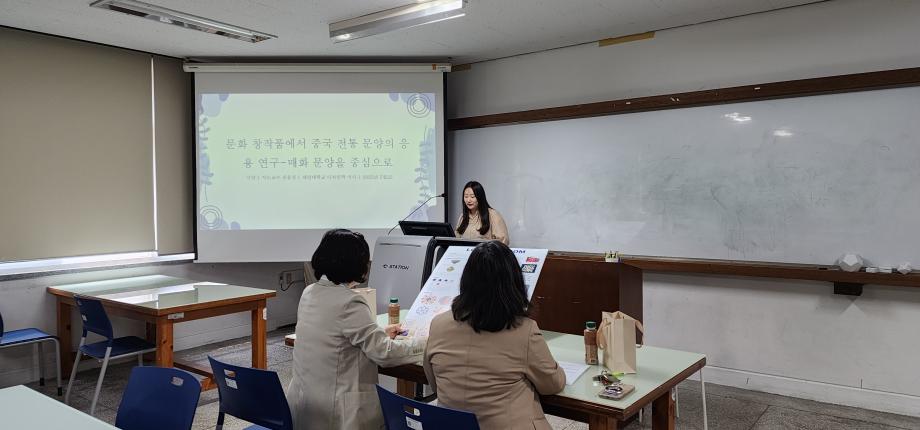 본문 시작 홈으로 시영소식 학과소개 학과과정 시영소식 입학/취업 AI 학과자랑 SNS소통 홈페이지가이드 학과행사 공지사항 학과행사 공모전 학과행사 페이스북 트위터 프린트 대학원 석사학위 청구 작품발표 및 연구보고서 심사 시각영상디자인학과 819 2025-06-01 2025년 5월 28일 오후 1시 반, 디자인관 112호에서 세명대 대학원 디자인학과 이*학생(시각디자인전공)의 석사학위 작품발표 및 연구보고서 심사를 진행하였습니다 "문화 창작품에서 중국 전통 문양의 응용에 관한 연구 -중국전통문양 매화 중심으로" 본 학생은 향후 박사학위도 부산대 건국대 경북대에 지원하였습니다 목록 이전스승의 날 축하와 감사의 선물 전달 다음 특강-'진로를 위한 자기 개발의 방법과 준비' 담당부서 : 시각영상디자인학과 담당자 : - 연락처 : 043-649-1726 최종수정일 : 2024-10-26 만족도조사 만족도 조사 이 페이지에서 제공하는 정보에 대하여 만족하시나요? 매우만족 만족 보통 불만족 매우불만족