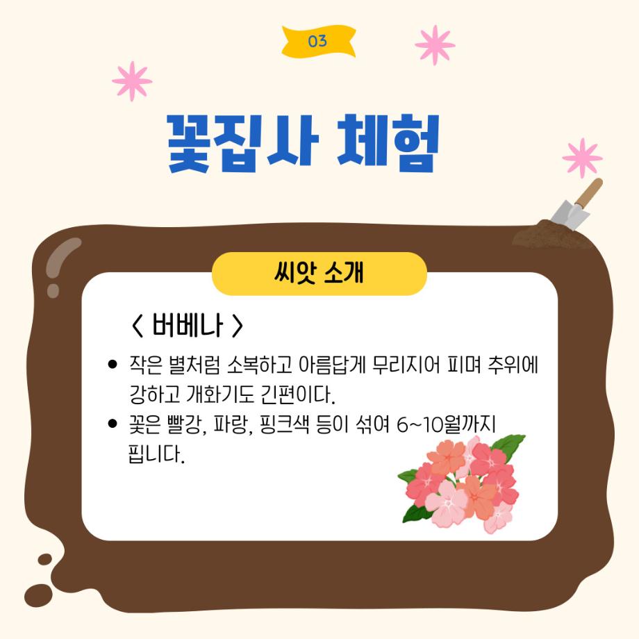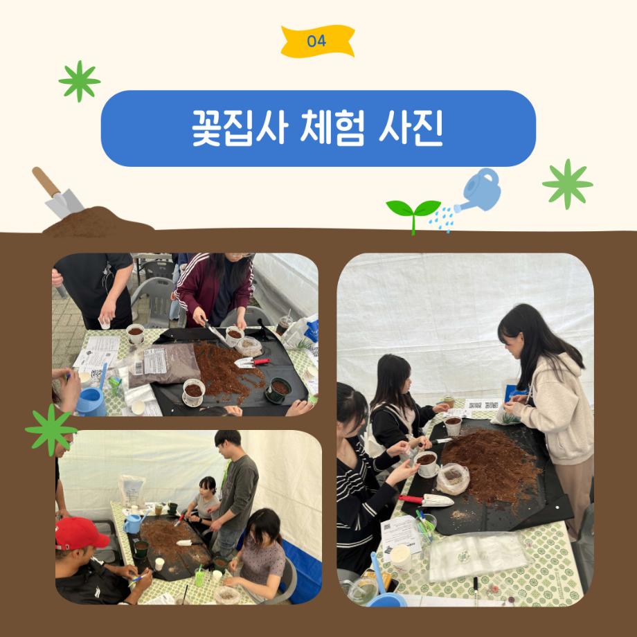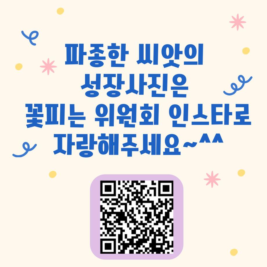 본문 시작 홈으로 포토갤러리 학생위원회 개요 학생위원회 소개 공지사항 활동결과 홈페이지가이드 포토갤러리 페이스북 트위터 프린트 [꽃피는 위원회] 제 4회 사랑의 꽃집사 체험이벤트 학생처 987 2025-05-28 [꽃피는 위원회] 제 4회 사랑의 꽃집사 체험이벤트 1. 일시: 5월 22일 12시~15시 2. 장소: 학생회관 앞 광장 3. 참여인원: 본교 구성원 114명 참여 4. 행사내용: 랜덤돌리기를 통한 씨앗 선정 후 씨앗 파종 진행, 참여완료자에 한해 만족도 조사 실시 5. 행사 만족도 조사 : 4.9/5.0 목록 이전[약속하는 위원회] 달려라 에코레이서 다음 [생각하는 위원회] 대형 현수막 문구 공모전 'Hear, 위로' 담당부서 : 장학복지팀 담당자 : - 연락처 : 043-649-1142 최종수정일 : 2024-10-26 만족도조사 만족도 조사 이 페이지에서 제공하는 정보에 대하여 만족하시나요? 매우만족 만족 보통 불만족 매우불만족