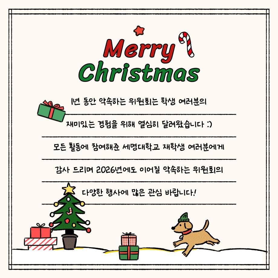 본문 시작 홈으로 포토갤러리 학생위원회 개요 학생위원회 소개 공지사항 활동결과 홈페이지가이드 포토갤러리 페이스북 트위터 프린트 [약속하는,생각하는 위원회] 세명파티시에 학술정보원 230 2025-11-17 안녕하세요 재미있는 경험을 위한 학생위원회 '약속하는 위원회' 입니다! 약속하는 위원회 행사인 세명 파티시에 활동이 성황리에 마무리 되었습니다 :) [세명 파티시에 행사 결과] 일시: 2025년 11월 11일(월) ~ 11월 12일(화) 장소: 도서관 1층 로비 행사 참여자: 85명 1년 동안 약속하는 위원회와 함께 해주셔서 감사드리며, 추후에 이어질 약속하는 위원회 활동에도 많은 관심 바랍니다!! 목록 이전[꽃피는 위원회] 꽃 돌려라 피어라 다음 [생각하는 위원회] 담당부서 : 장학복지팀 담당자 : - 연락처 : 043-649-1142 최종수정일 : 2024-10-26 만족도조사 만족도 조사 이 페이지에서 제공하는 정보에 대하여 만족하시나요? 매우만족 만족 보통 불만족 매우불만족
