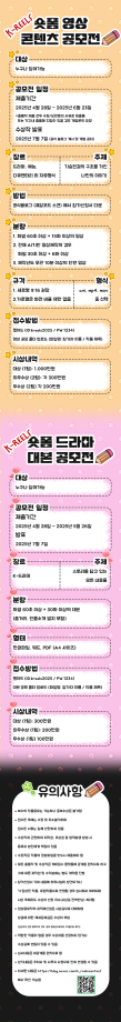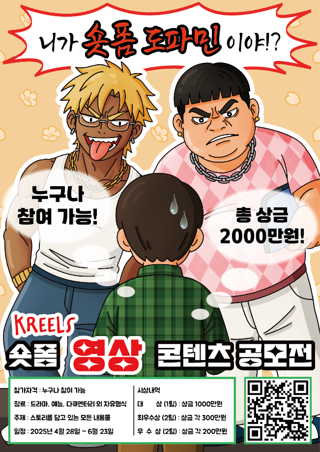 본문 시작 홈으로 MCC News 학과소개 교수소개 학과과정 MCC News MCC SNS 홈페이지가이드 미디어 정보통 학과 및 재학생 교수 및 졸업생 미디어 정보통 미디어 정보통 페이스북 트위터 프린트 K-REELS 숏폼 컨텐츠 공모전 미디어콘텐츠창작학과 1378 2025-04-24 자세한 내용은 저희 블로그(큐알코드)를 통해서 지속적으로 업데이트가 된다고 하니 많은 관심바랍니다. https://blog.naver.com/k_reelscontest 목록 이전💐봄에 나들이 가기 좋은 장소~!🌸 다음 커뮤니케이션디자인국제공모전 담당부서 : 미디어콘텐츠창작학과 담당자 : - 연락처 : 043-649-1741 최종수정일 : 2024-10-26 만족도조사 만족도 조사 이 페이지에서 제공하는 정보에 대하여 만족하시나요? 매우만족 만족 보통 불만족 매우불만족
