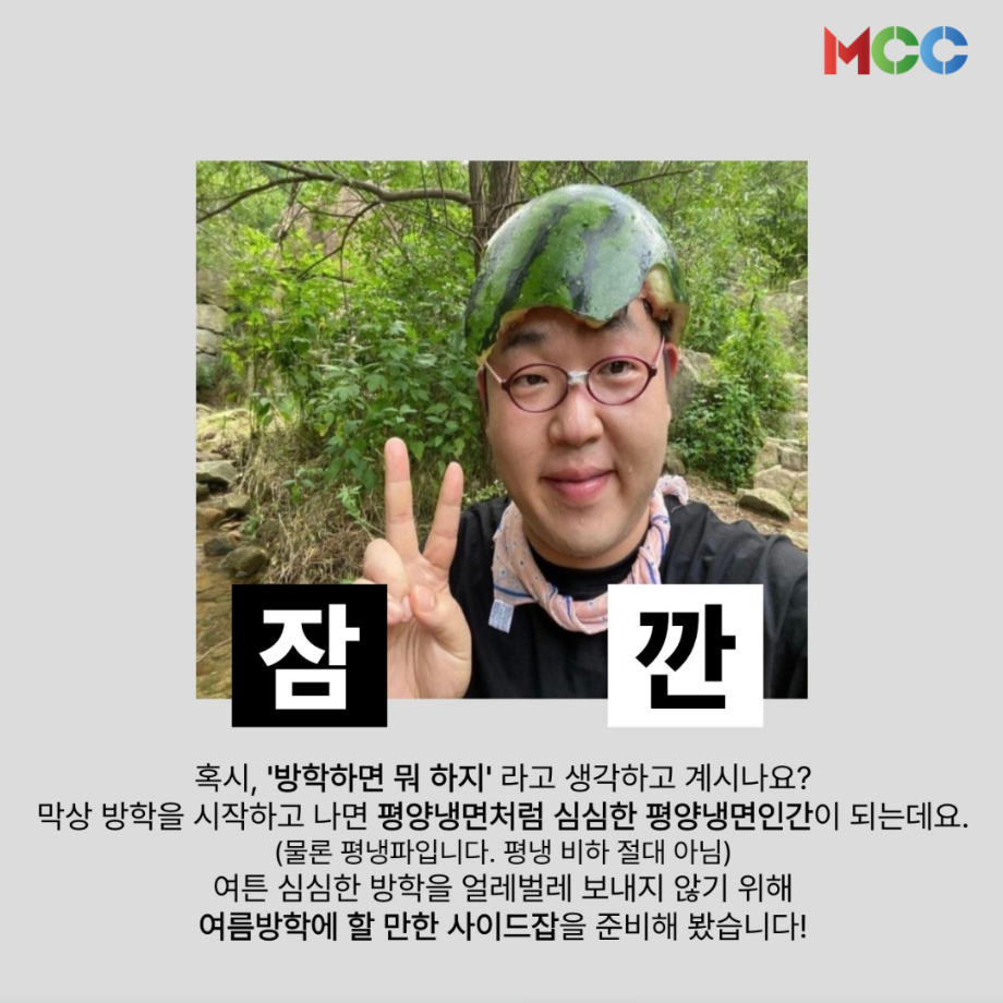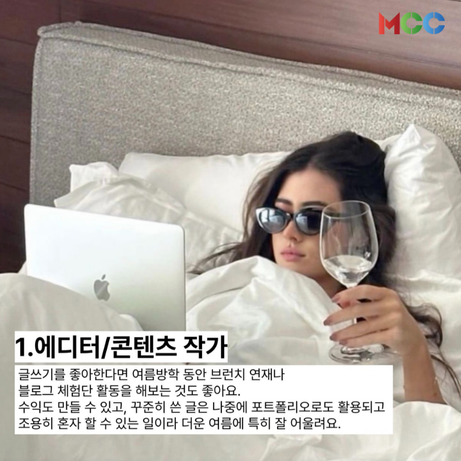 본문 시작 홈으로 MCC News 학과소개 교수소개 학과과정 MCC News MCC SNS 홈페이지가이드 미디어 정보통 학과 및 재학생 교수 및 졸업생 미디어 정보통 미디어 정보통 페이스북 트위터 프린트 ☀️“여름방학에 뭐 하지..?”☀️ 미디어콘텐츠창작학과 998 2025-06-17 방학에 할 수 있는 사이드잡을 추천해드립니다!😎 1.에디터/콘텐츠 작가 2.썸네일•디자인 외주 3.영상 편집 & 자막 작업 4.온라인 서포터즈 & 대외활동 5.중고거래+스마트스토어 도전 자세한 내용은 @smu_mcc에서! 목록 이전2025 제천시 교육발전특구사업 다음 미콘창 학생들을 위한 자격증 추천 리스트⭐ 담당부서 : 미디어콘텐츠창작학과 담당자 : - 연락처 : 043-649-1741 최종수정일 : 2024-10-26 만족도조사 만족도 조사 이 페이지에서 제공하는 정보에 대하여 만족하시나요? 매우만족 만족 보통 불만족 매우불만족