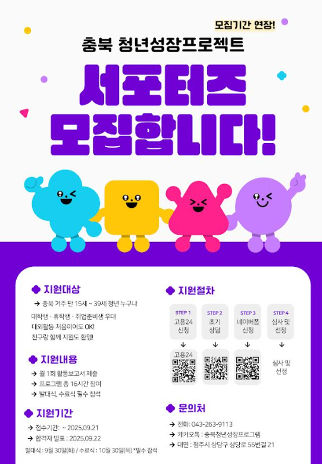 본문 시작 홈으로 MCC News 학과소개 교수소개 학과과정 MCC News MCC SNS 홈페이지가이드 미디어 정보통 학과 및 재학생 교수 및 졸업생 미디어 정보통 미디어 정보통 페이스북 트위터 프린트 충북 청년성장프로젝트 안내 미디어콘텐츠창작학과 602 2025-09-16 충북 청년성장프로젝트 안내해드립니다. 목록 이전2025학년도 2학기 원어민 교수와의 대화 이전「2025년 농업·농촌 영상·사진 공모전」 담당부서 : 미디어콘텐츠창작학과 담당자 : - 연락처 : 043-649-1741 최종수정일 : 2024-10-26 만족도조사 만족도 조사 이 페이지에서 제공하는 정보에 대하여 만족하시나요? 매우만족 만족 보통 불만족 매우불만족