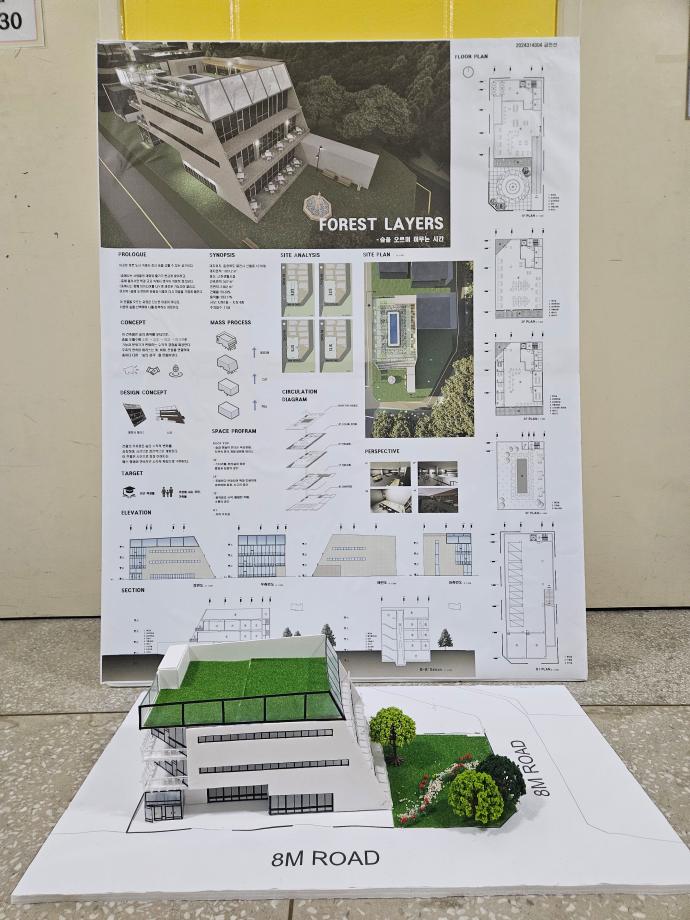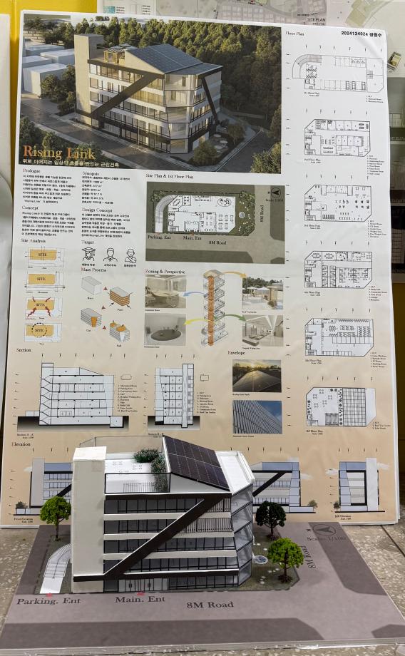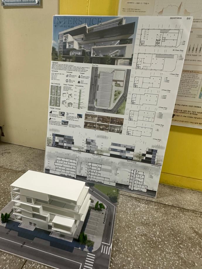 본문 시작 홈으로 커뮤니티 학과소개 교수소개 교육과정 학과 행사 및 활동 커뮤니티 홈페이지가이드 열린정보 학과일정 학과공지 채용정보 및 자료 열린정보 포토갤러리 먹거리, 즐길거리 포토갤러리 사진 사진 영상 사진 페이스북 트위터 프린트 사진 영상 2학년 기말 설계과제 건축학과 24 2025-12-23 2학년 설계 스튜디오 주제는 🏢 근린생활시설. 일상과 도시 사이에서 사람들의 활동을 담아내는 공간을 제안했습니다. 목록 이전3학년 기말 설계과제 다음 1학년 기말 설계과제 만족도조사 만족도 조사 이 페이지에서 제공하는 정보에 대하여 만족하시나요? 매우만족 만족 보통 불만족 매우불만족