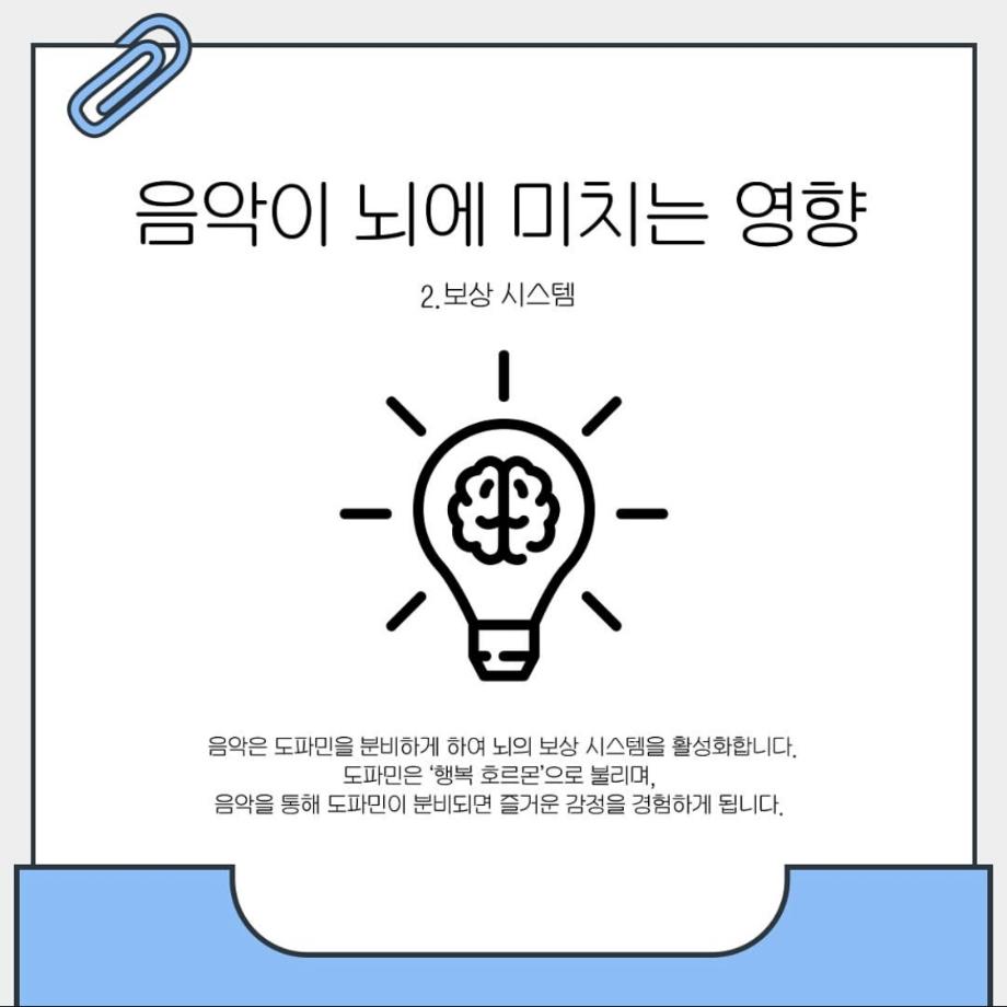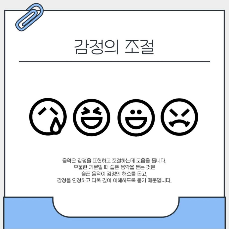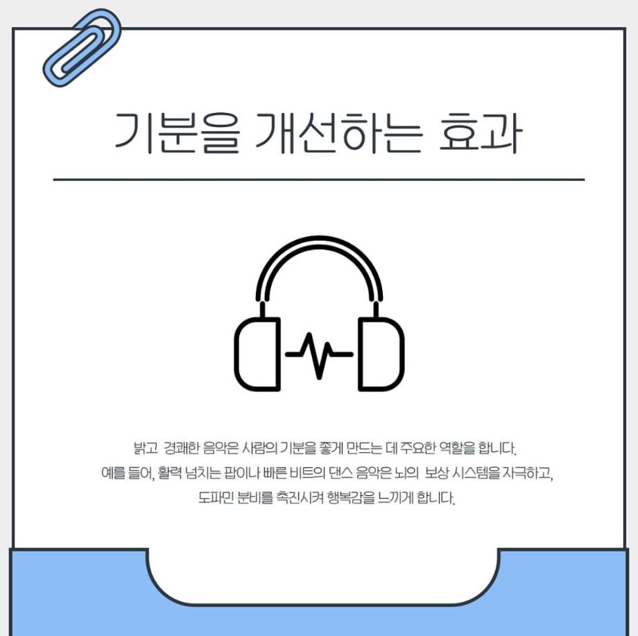 본문 시작 홈으로 학과 커뮤니티 학부소개 교수소개 교육목표 입학안내 학과 커뮤니티 대학원 커뮤니티 홈페이지가이드 학과 갤러리 학과소식 학사일정 학과 갤러리 학과 갤러리 페이스북 트위터 프린트 음악이 심리에 미치는 영향 상담심리학과 1101 2025-05-17 안녕하세요 세명대학교 상담심리학과 학생회 오비르입니다 ! 우리가 매일 듣는 음악이 심리에 미치는 영향이 있다는 사실을 알고 계신가요? 음악은 뇌의 편도체, 보상 시스템을 자극해 감정을 조절하는 역할을 합니다. 마음이 복잡할 때 음악을 통해서 자신의 감정을 인정하고 이해해보는 것은 어떨까요? (~˘▾˘)~♫•*¨*•.¸¸♪ 목록 이전운동과 상담심리 다음 상담심리학과 MT 일정 안내 만족도조사 만족도 조사 이 페이지에서 제공하는 정보에 대하여 만족하시나요? 매우만족 만족 보통 불만족 매우불만족