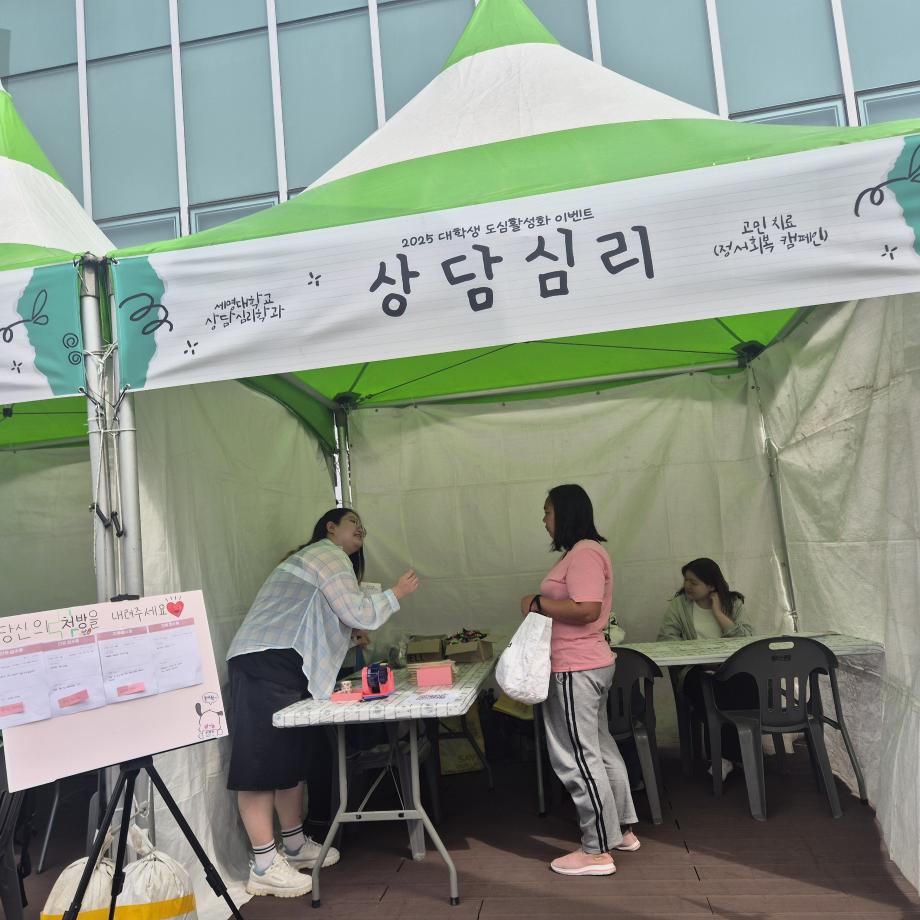 본문 시작 홈으로 학과 커뮤니티 학부소개 교수소개 교육목표 입학안내 학과 커뮤니티 대학원 커뮤니티 홈페이지가이드 학과 갤러리 학과소식 학사일정 학과 갤러리 학과 갤러리 페이스북 트위터 프린트 2025 대학생 도심활성화 이벤트 상담심리학과 305 2025-10-14 안녕하세요 세명대학교 상담심리학과입니다! 9월 30일에 진행된 2025 대학생 도심활성화 행사에서 상담심리학과 학생들이 '마음약국'이라는 부스로 정서회복 캠페인을 진행했습니다. ( ·•︡_•︠)ʕ𐭩 다양한 사람들의 고민을 듣고 공감과 위로를 전하는 의미 있는 시간이었습니다. 앞으로 이런 기회가 더 많아지길 바라며, 큰 고민 없이 행복한 날들이 이어지길 바랍니다 :) 목록 이전GRIT 동아리 봉사활동 다음 2025학년도 Step Up! SMU창업캠프 및 경진대회 만족도조사 만족도 조사 이 페이지에서 제공하는 정보에 대하여 만족하시나요? 매우만족 만족 보통 불만족 매우불만족
