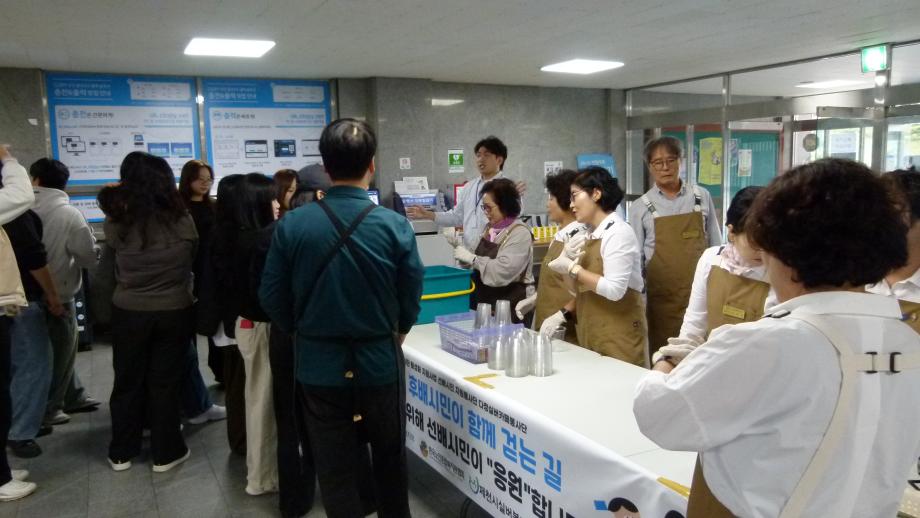 본문 시작 홈으로 커뮤니티 학과소개 교수소개 교육과정 현장실습 및 취업정보 커뮤니티 홈페이지가이드 포토갤러리 학과공지 학사일정 학생회 동아리 학생 소통 광장 포토갤러리 전공자료실 서식자료실 포토갤러리 페이스북 트위터 프린트 [사회복지학과] 중간고사 응원 간식 나눔 이벤트 진행 사회복지학과 217 2025-11-05 제천시실버복지관에서 학생들의 중간고사를 응원하기 위해 간식 나눔 이벤트를 진행해주셨습니다. 목록 이전[학생회] '우리 내일 놀래?' 행사 진행 다음 [사회복지학과] 찾아가는 통계 특강 진행 만족도조사 만족도 조사 이 페이지에서 제공하는 정보에 대하여 만족하시나요? 매우만족 만족 보통 불만족 매우불만족