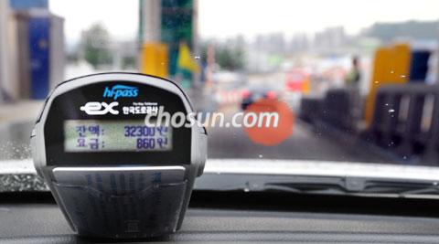 - ▲ 지난 5일 오후 한 차량이 경기 성남 경부고속도로 판교 요금소에 있는 하이패스 전용 도로를 통과하자 단말기에 통행 요금이 표시되고 있다. 조인원 기자 join1@chosun.com